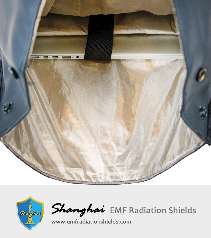 Shielded interior liner blocks WiFi (2.4 & 5GHz), Bluetooth, cell signals including 5G networks, GPS, RFID, and radio signals with 90dB average attenuation from low MHz all the way up to 40GHz. EMI, EMR, and EMF radiation shielding.