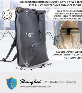 Faraday Backpack Stylish Roll Top Bag with Durable Water-Resistant Exterior, RF Blocking Liner, Padded Laptop Compartment, Device Isolation, Anti-Tracking, EMF Shielding