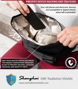 Stylish waist bag/fanny pack/body sling perfect for travel and everyday wear. Designed for defense against data theft, personal security, EMP protection, EMF radiation reduction, law enforcement and military forensic evidence collection, and to enhance digital privacy (anti-hacking/tracking/spying).