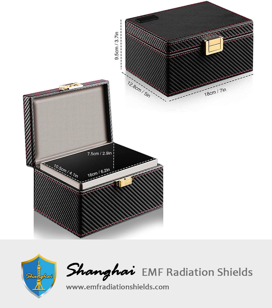 The exterior is made of high-quality PU leather, which is more durable than ordinary boxs. And carbon fiber pattern makes it very luxurious. It also prevents water and dust from invading the inner side and protects the inner fabric. The inner layer is made of premium RF shielding fabric and covered with high-quality flocking layer. On the basis of protecting the shielding fabric, it can stably block the signal and improve the service life