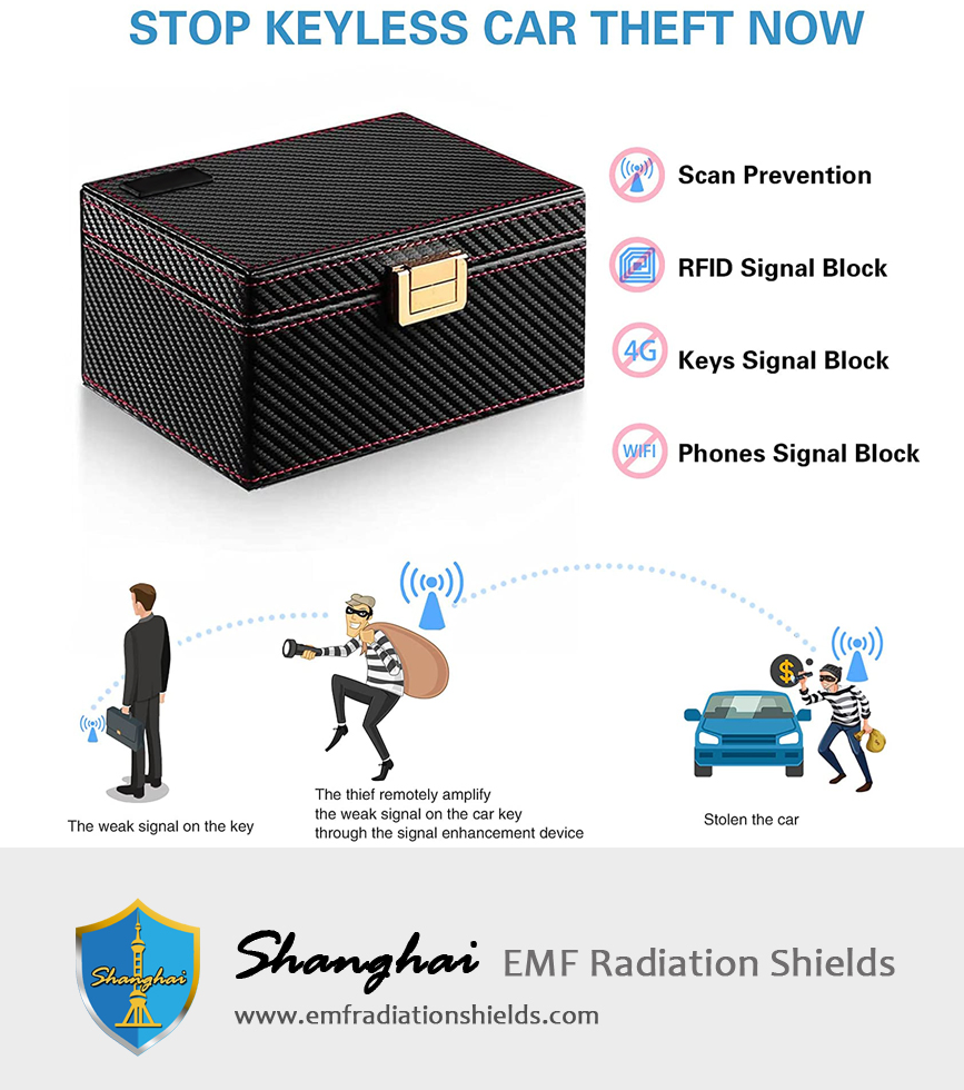 This box uses special material for blocking signal.The product is improved and overlapped with multi-layer blocking material inside, which greatly improves the blocking force. Put the key in the closed Faraday box, you can block the car key signal and protect your car! Note: to ensure the blocking signal, please close the cover