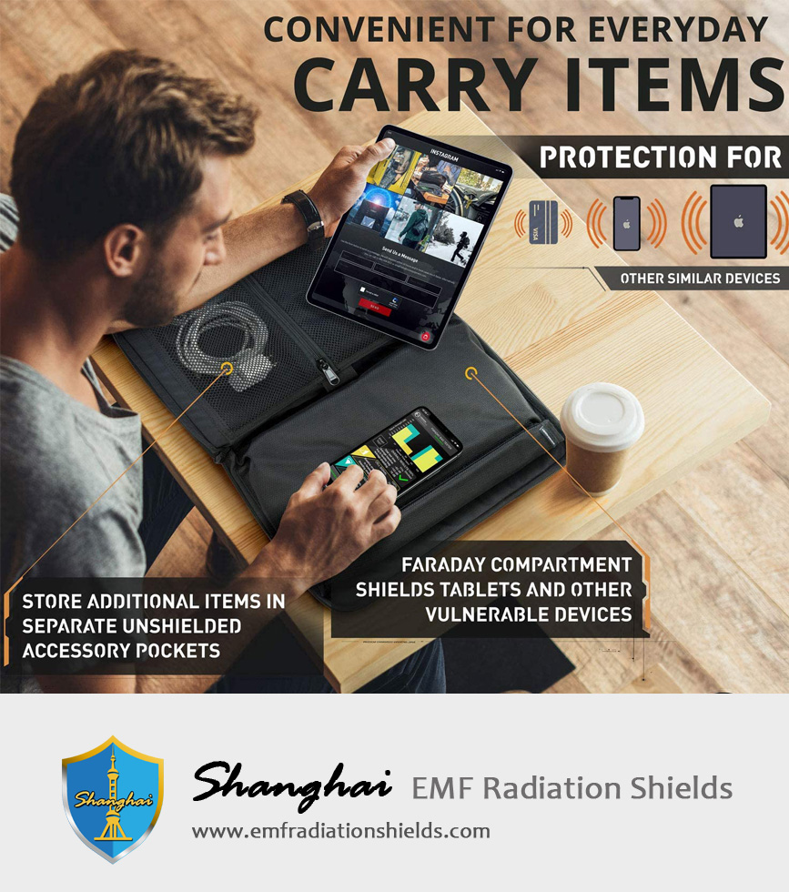 Faraday Tablet Bag Multi-Functional Travel Case with Accessory Pockets and Built-in Faraday Sleeve Signal-Blocking, Anti-Tracking, Anti-Hacking, Anti-Spying Faraday Cage.