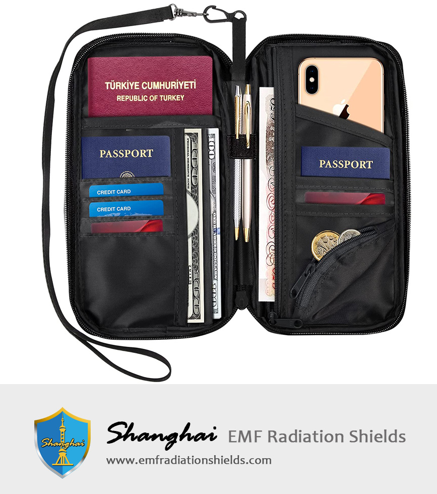 RFID-blocking passport wallet has a special shielding material built into it that'll help protect your important items like your credit cards from "skimming". With its multitude of pockets and RFID-blocking technology.
