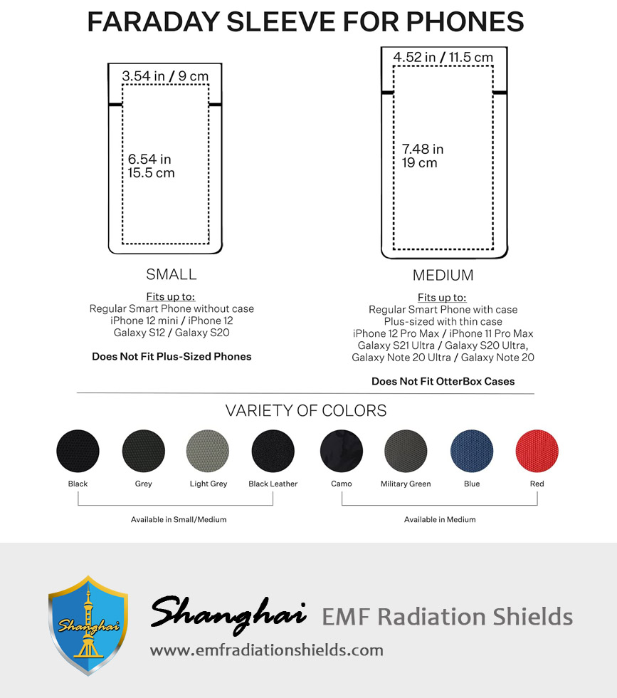 Our Small faraday bag sleeve (15.5 x 9cm) is perfect for smartphones (iPhone 6/7/8/X/XS, Galaxy S), and flip phones or key fobs. Medium (19 x 11.5cm) will fit larger smartphones (iPhone 6/7/8 Plus/XR/XS Max, Galaxy S+, Galaxy Note). Also available in tablet, laptop, and keyfob sizes - see product description for details.