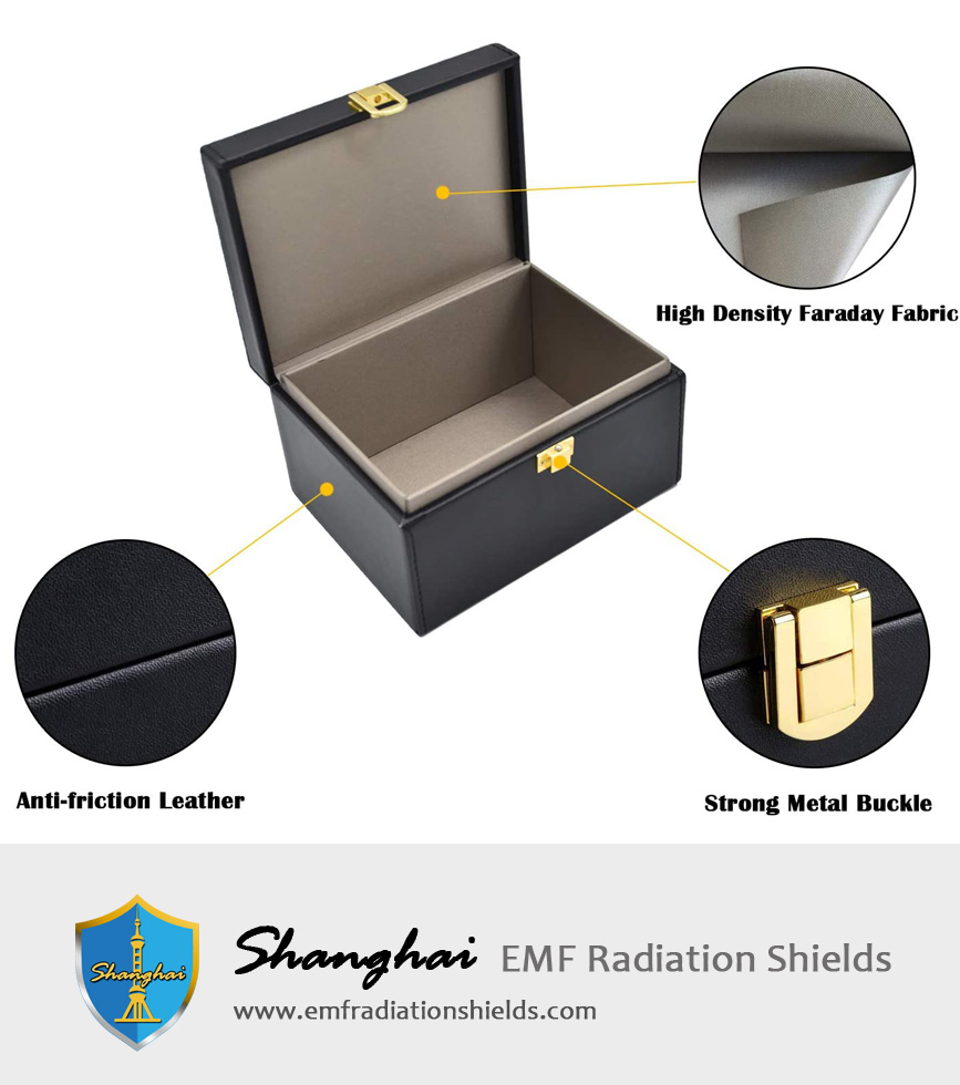 This faraday box is made from the finest materials, externally made with PU leather and internally lined with a premium RF shielding. This stylish and sophisticated box will fit well in any area of your home with a prestigious and elegant feel to it.